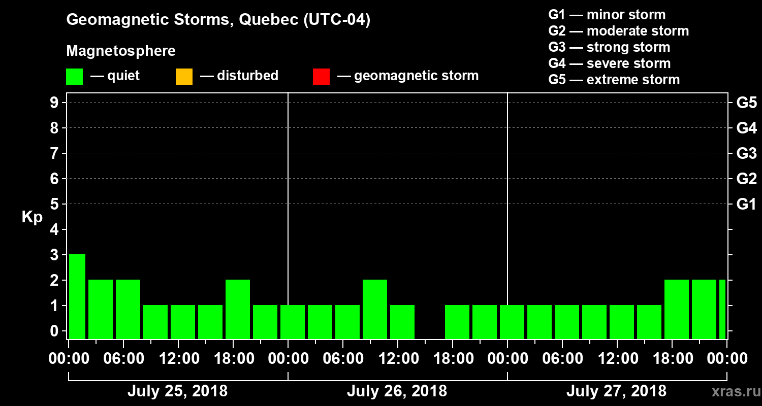 Geomagnetic storms in Quebec on Jul 27, 2018