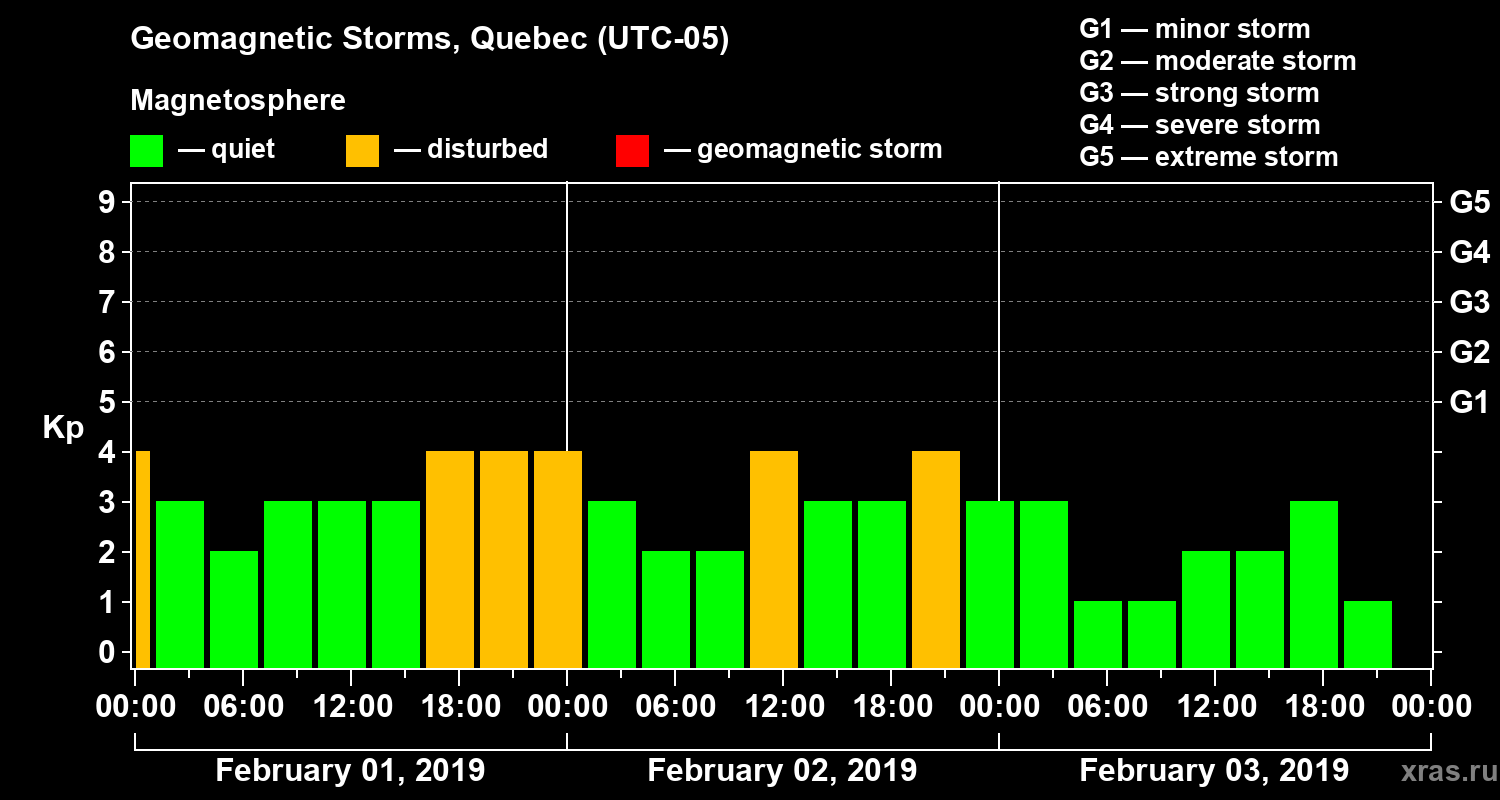 Geomagnetic storms in Quebec on Feb 03, 2019
