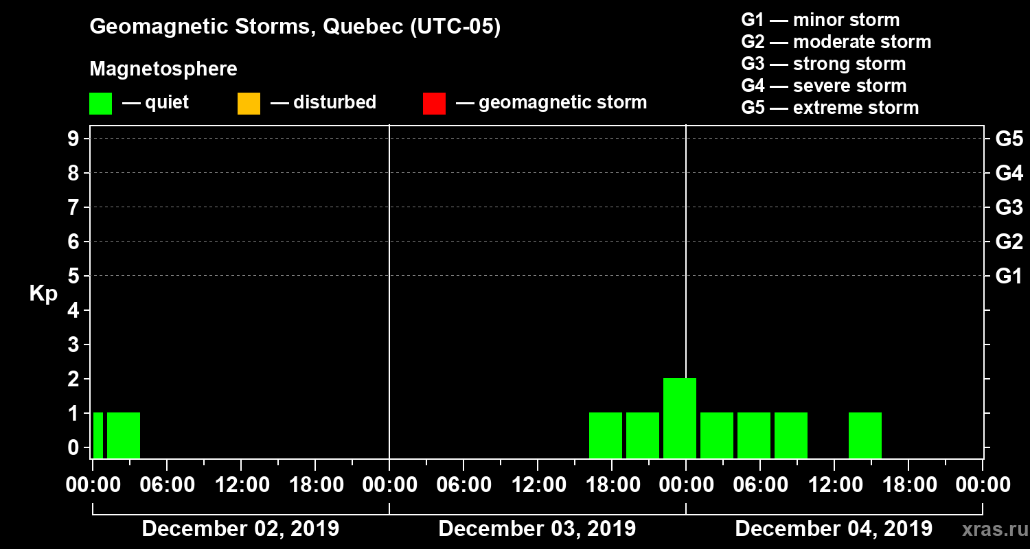 Geomagnetic storms in Quebec on Dec 04, 2019