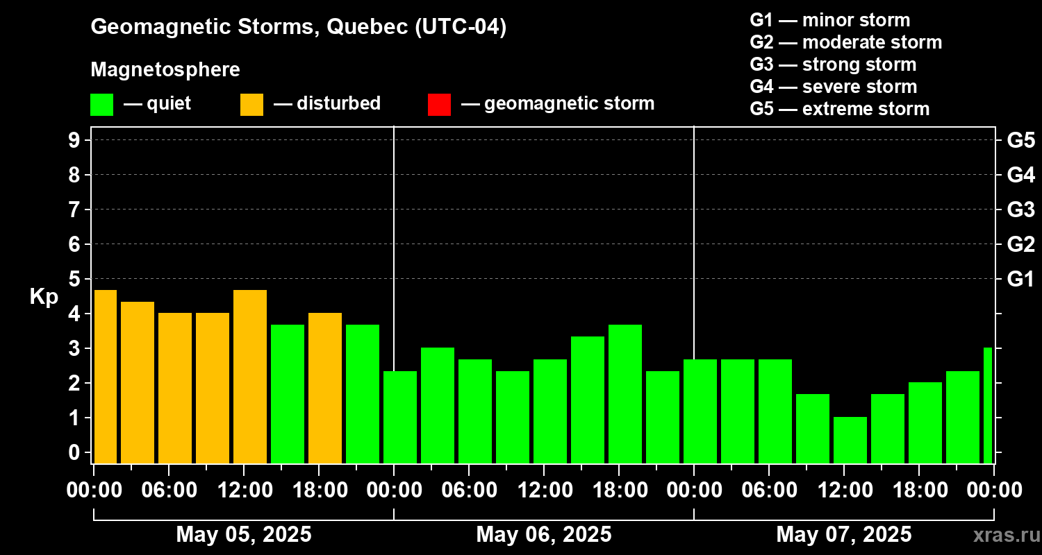 Geomagnetic storms in Quebec on May 07, 2025