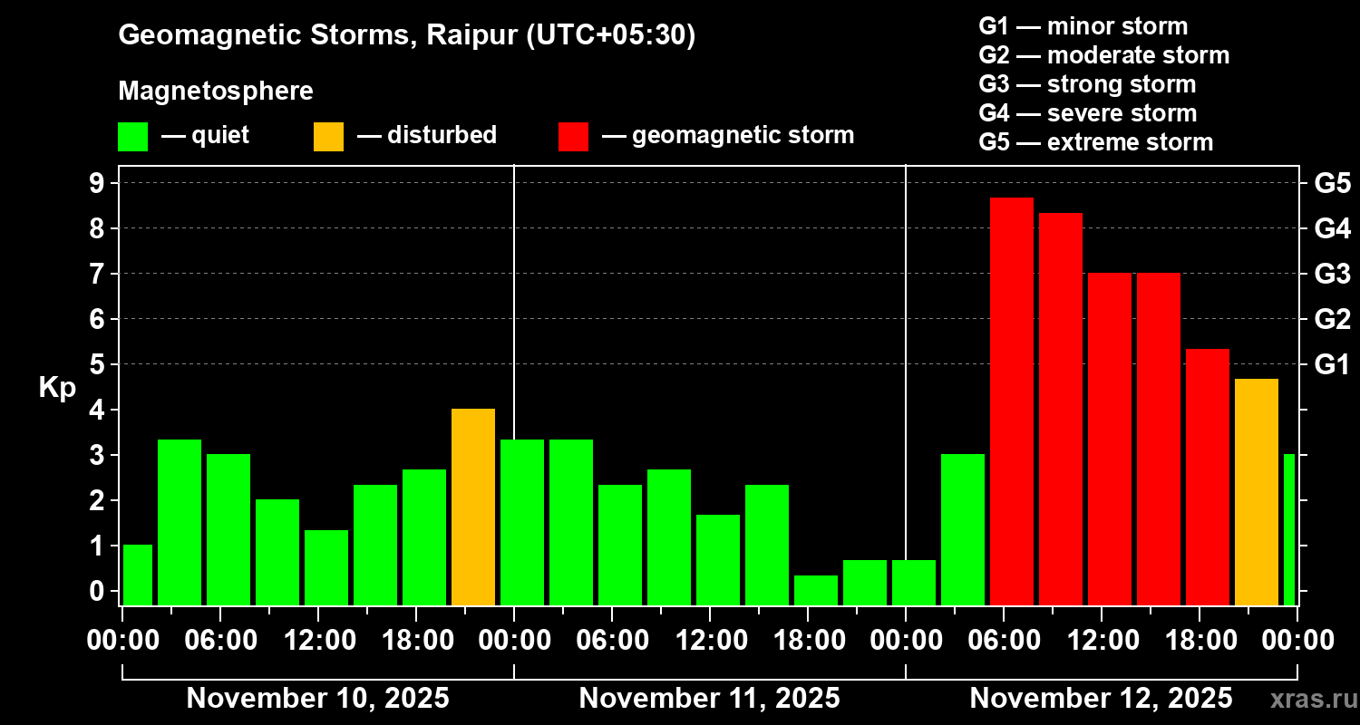 Geomagnetic storms in Raipur — Nov 12, 2025