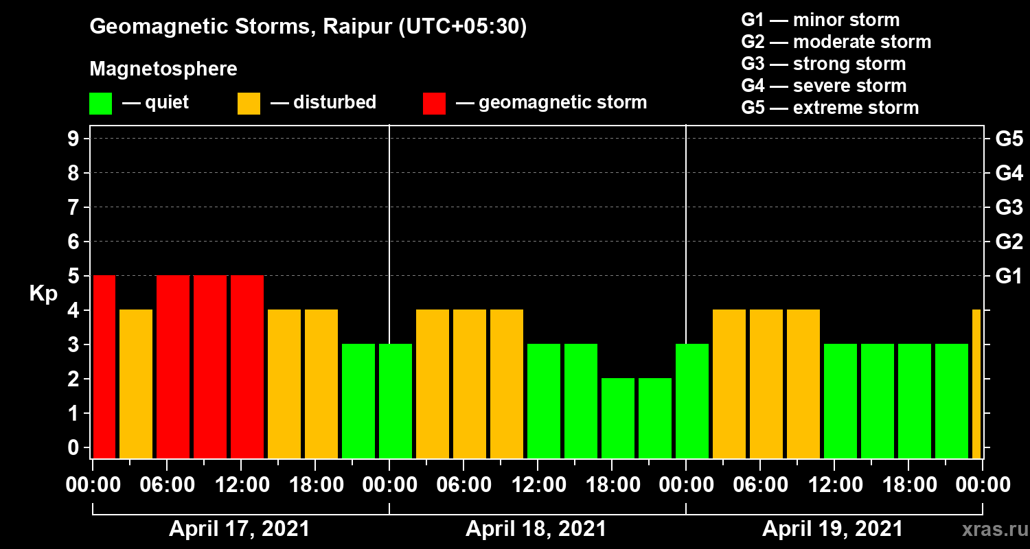 Geomagnetic storms in Raipur — Apr 19, 2021