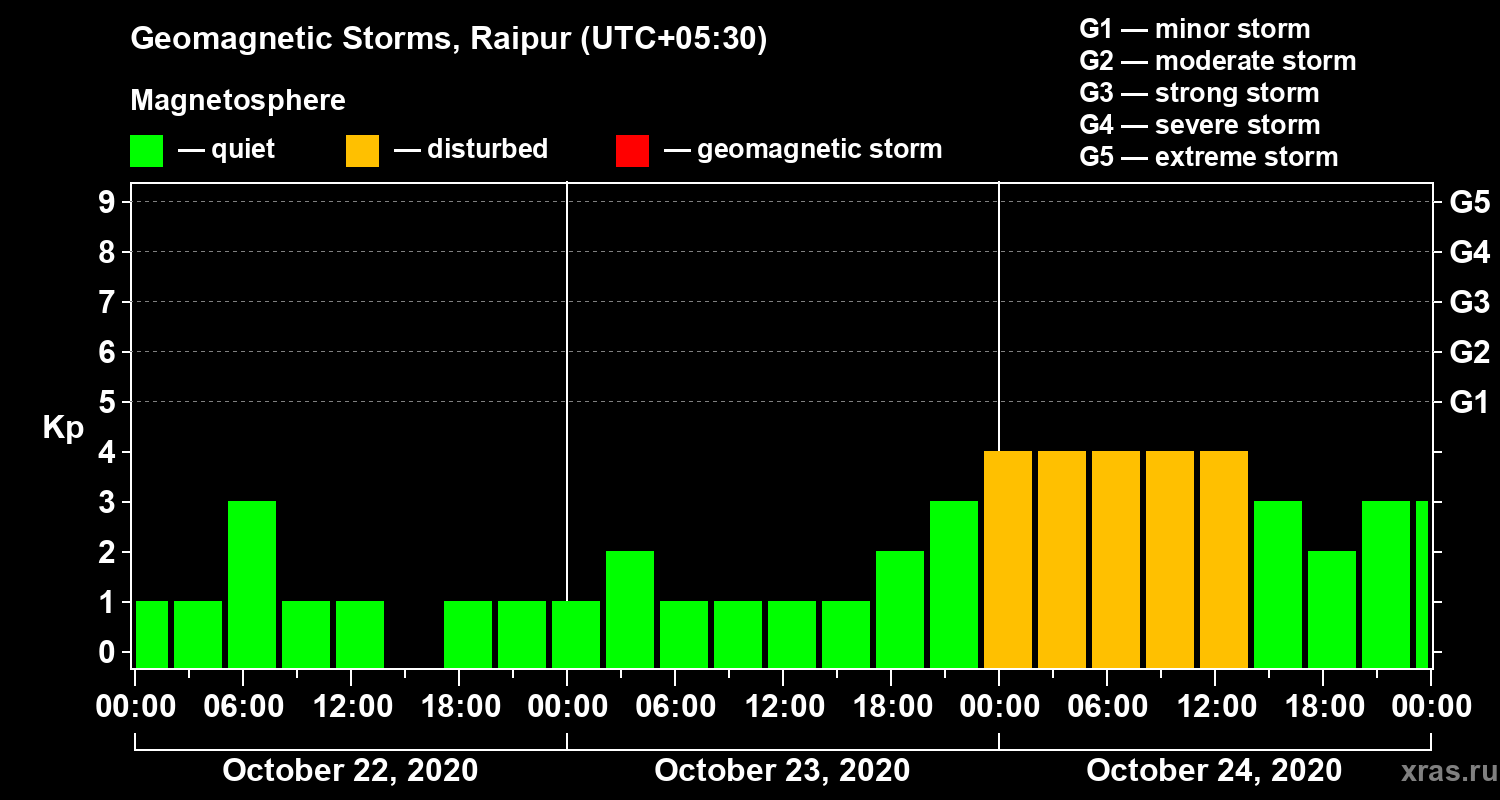 Geomagnetic storms in Raipur — Oct 24, 2020
