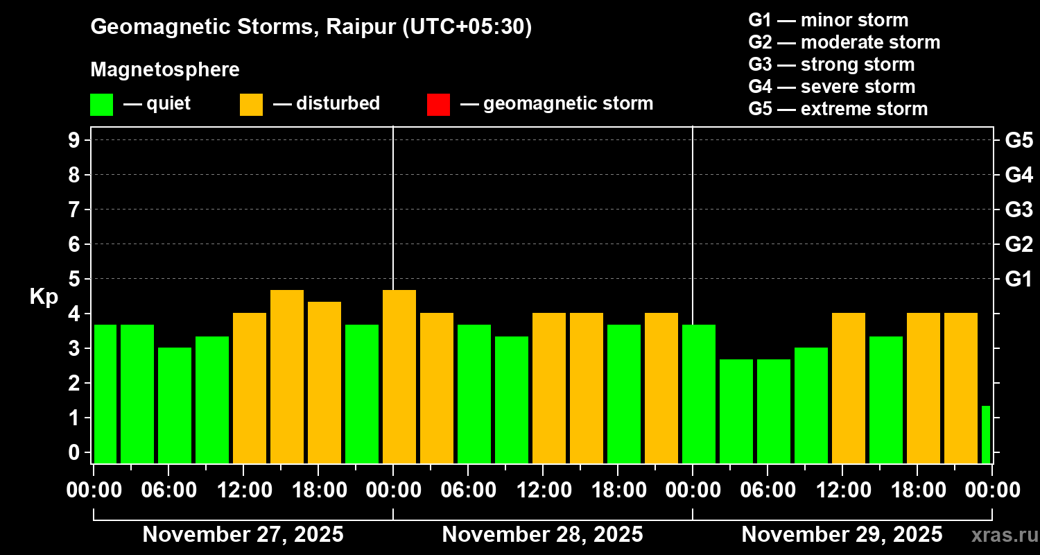 Geomagnetic storms in Raipur — Nov 29, 2025