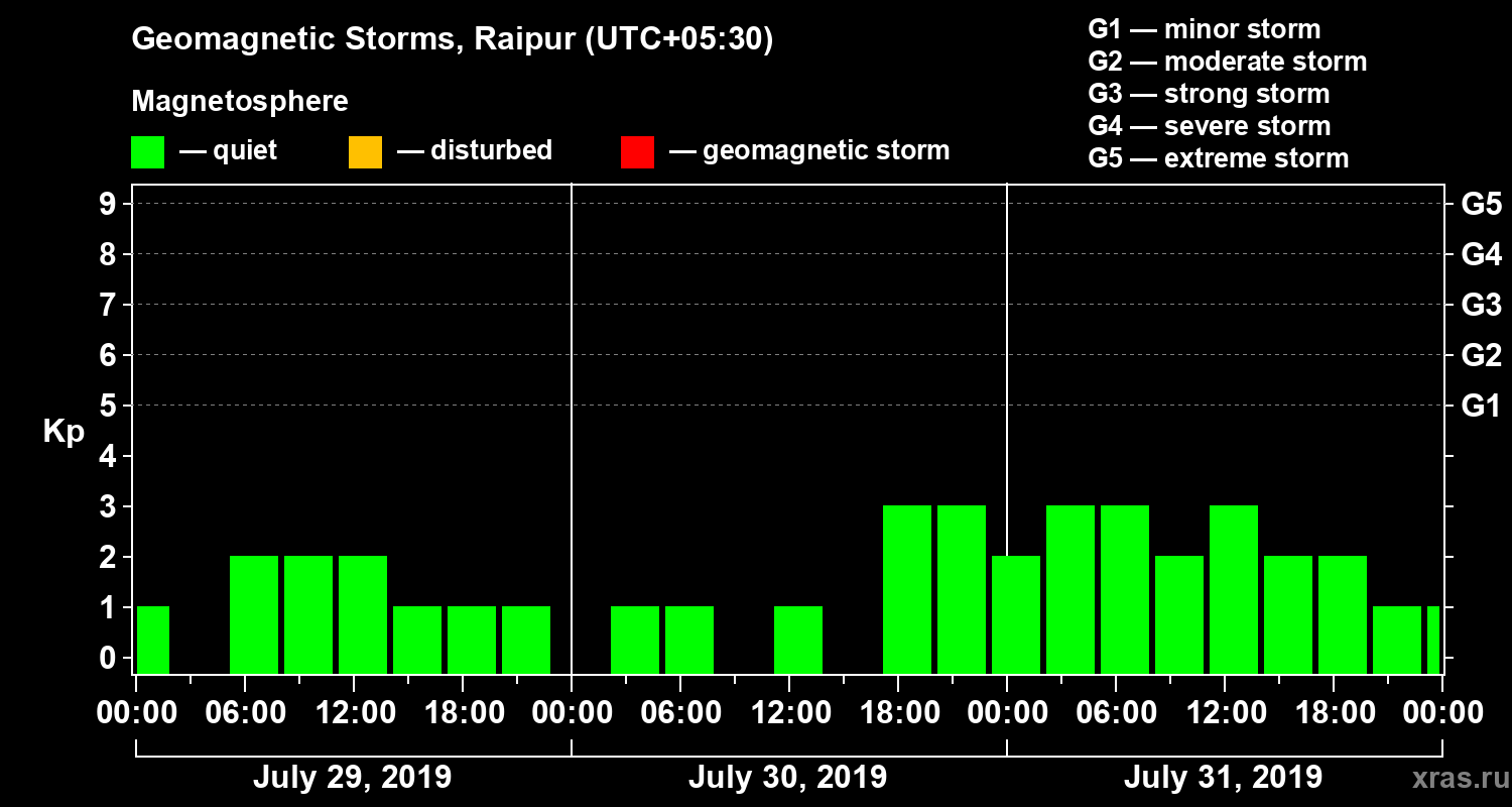 Geomagnetic storms in Raipur — Jul 31, 2019