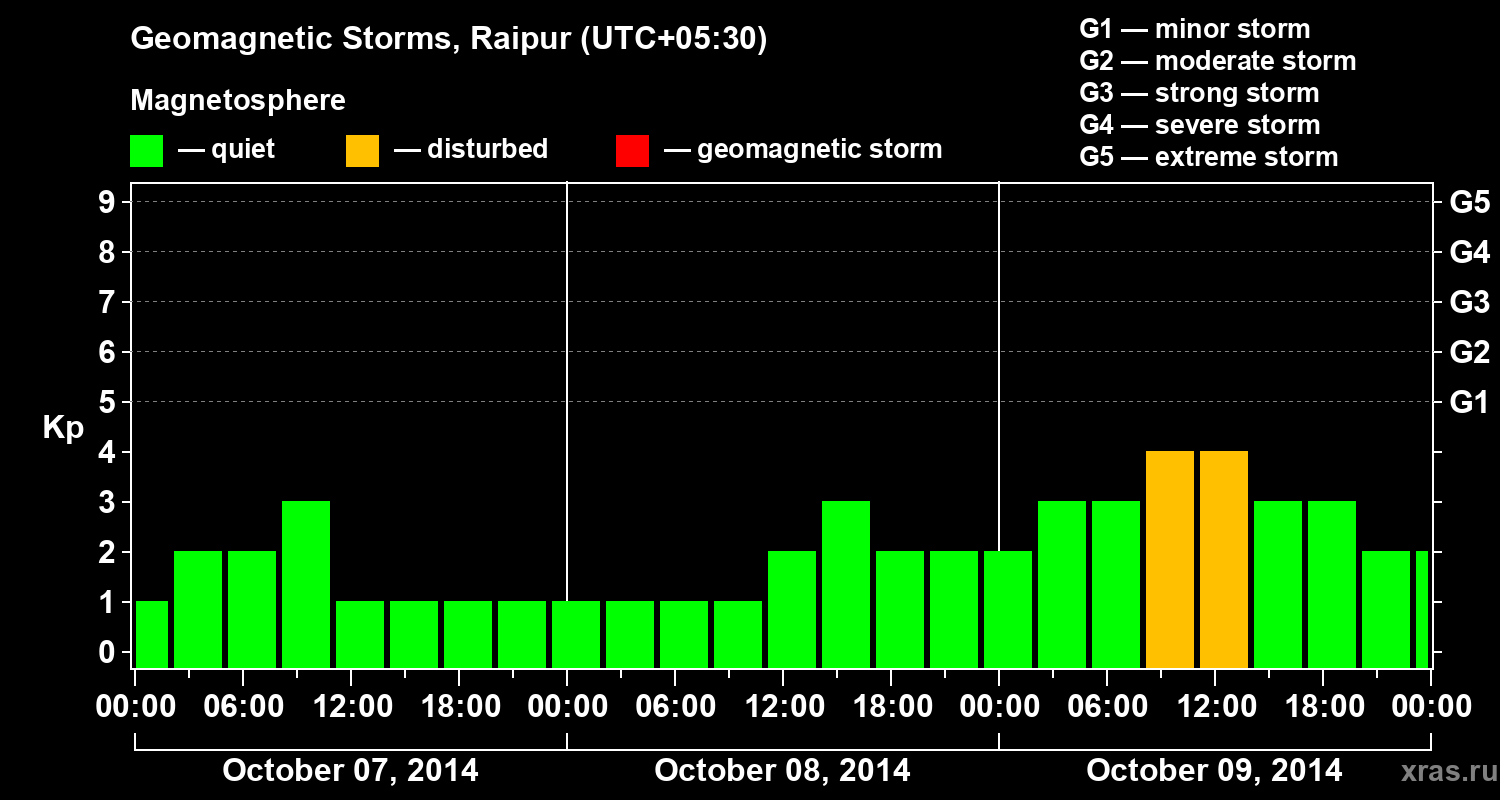 Geomagnetic storms in Raipur — Oct 09, 2014