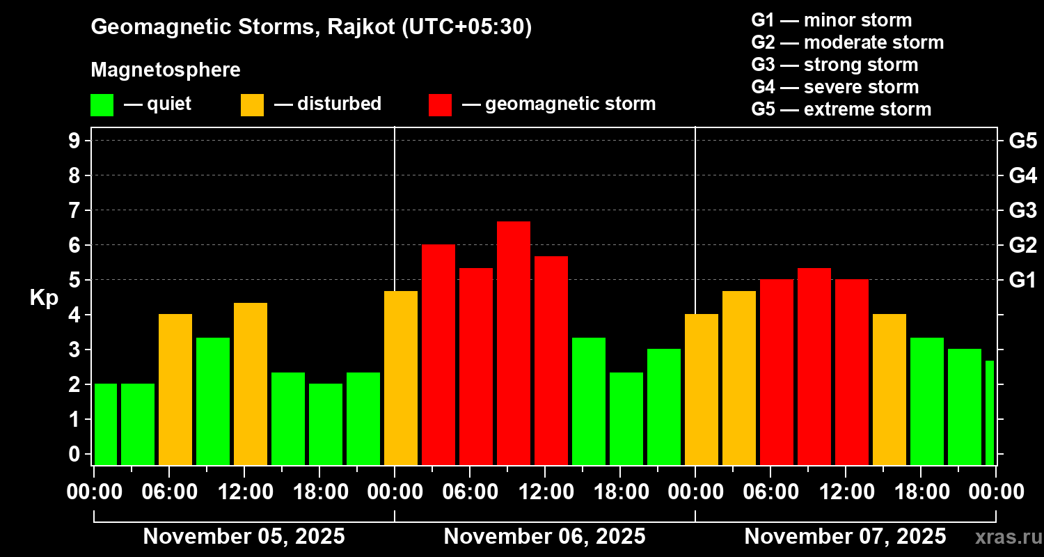 Geomagnetic storms in Rajkot — Nov 07, 2025
