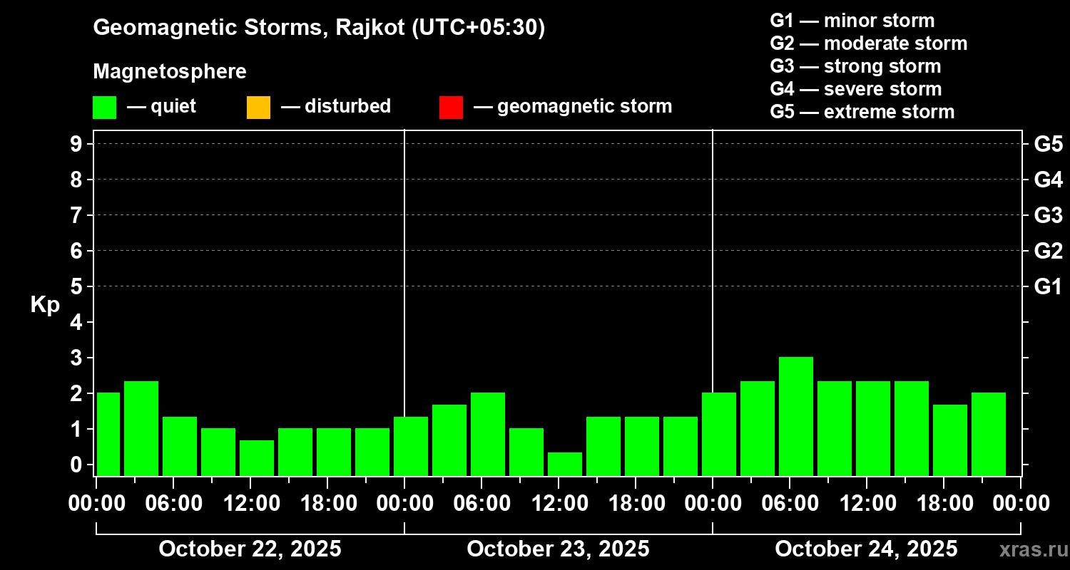 Geomagnetic storms in Rajkot — Oct 24, 2025