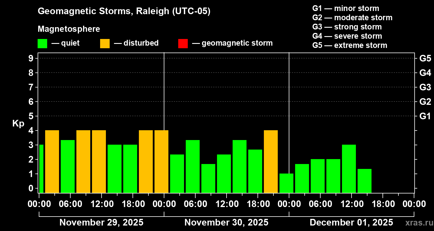 Geomagnetic storms in Raleigh on Dec 01, 2025