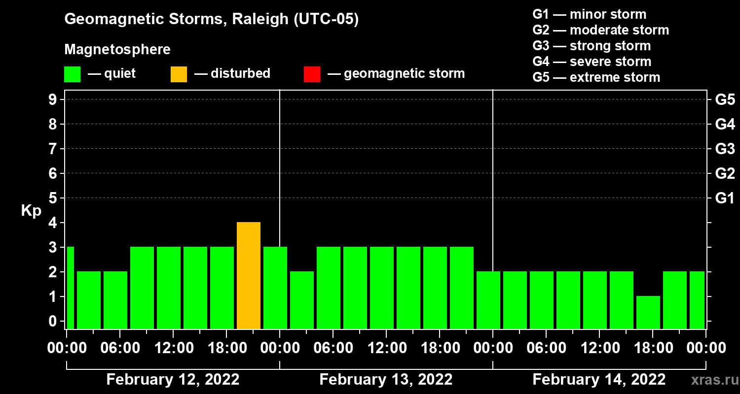 Geomagnetic storms in Raleigh in February 2022