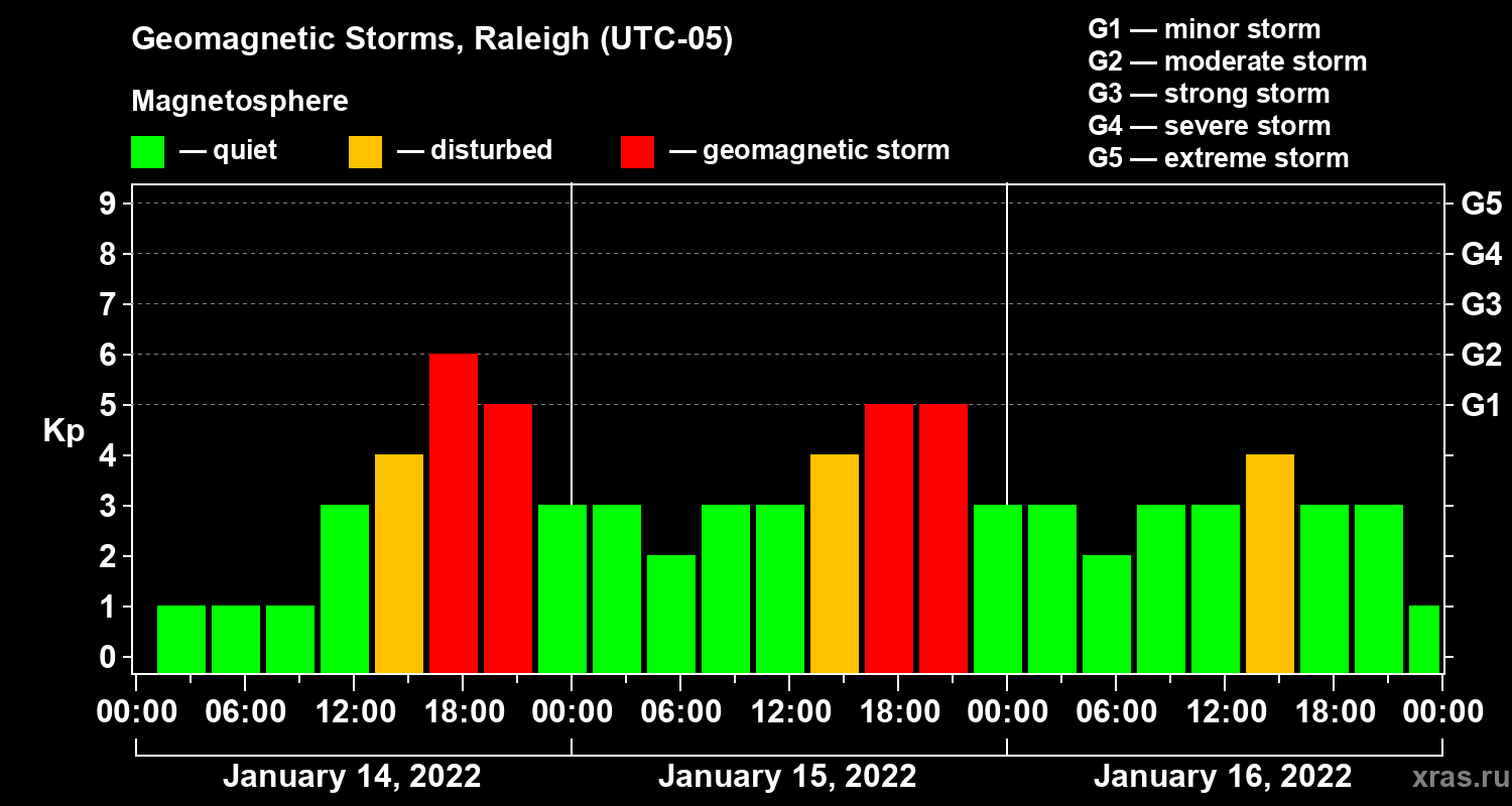 Geomagnetic storms in Raleigh — Jan 16, 2022