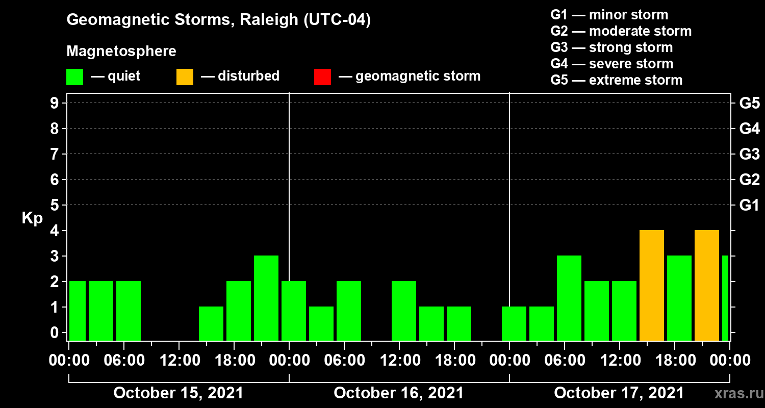 Geomagnetic storms in Raleigh on Oct 17, 2021