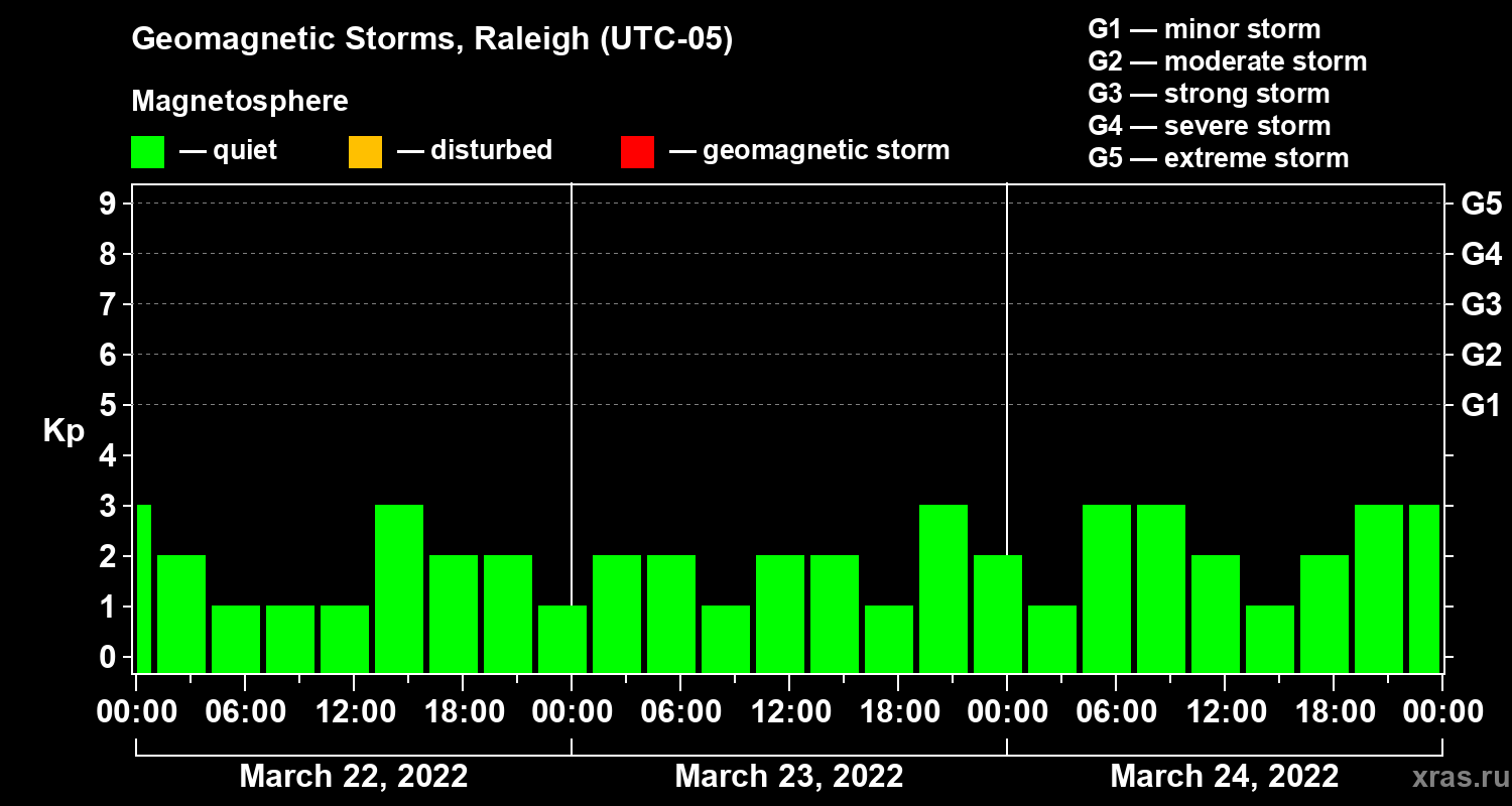 Geomagnetic storms in Raleigh in March 2022