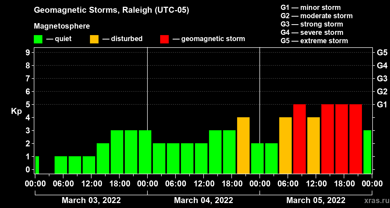 Geomagnetic storms in Raleigh — Mar 05, 2022