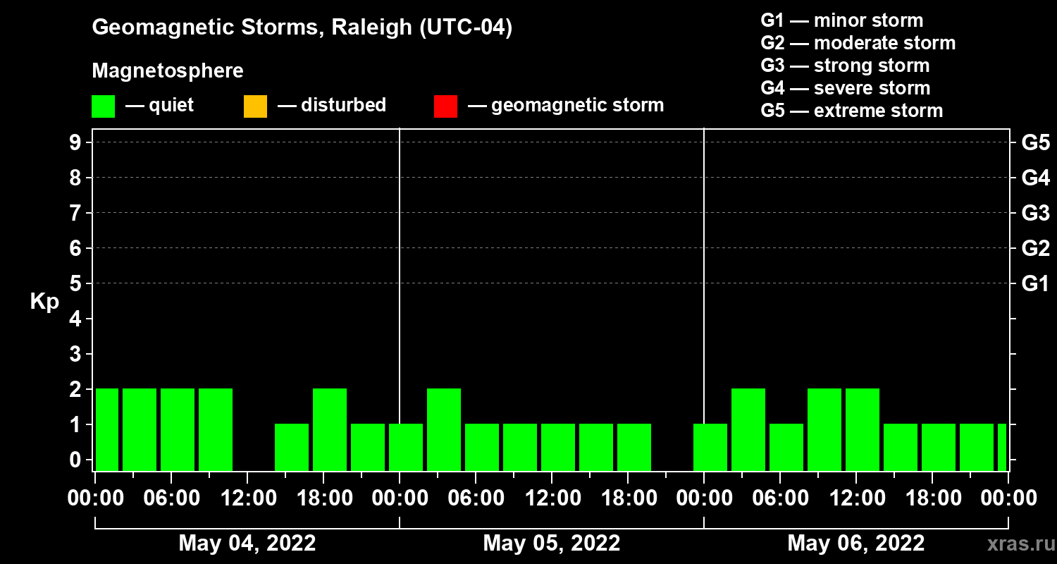 Changes in the geomagnetic index Kp from May 4 to 6, 2022 for mid latitudes