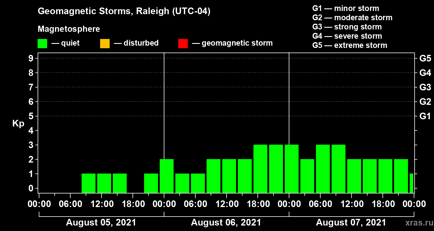 Geomagnetic storms in Raleigh in August 2021