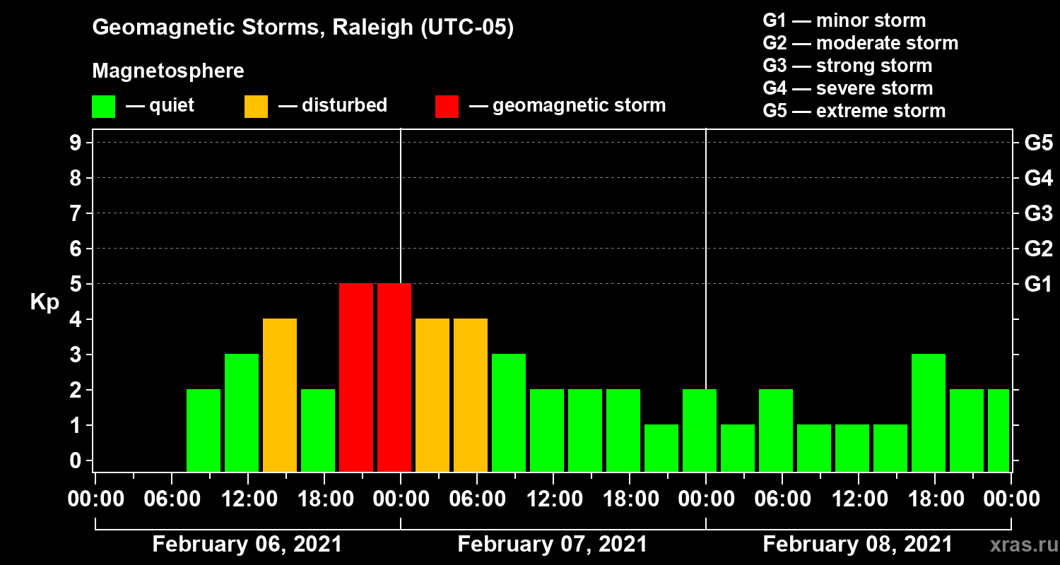 Geomagnetic storms in Raleigh — Feb 08, 2021