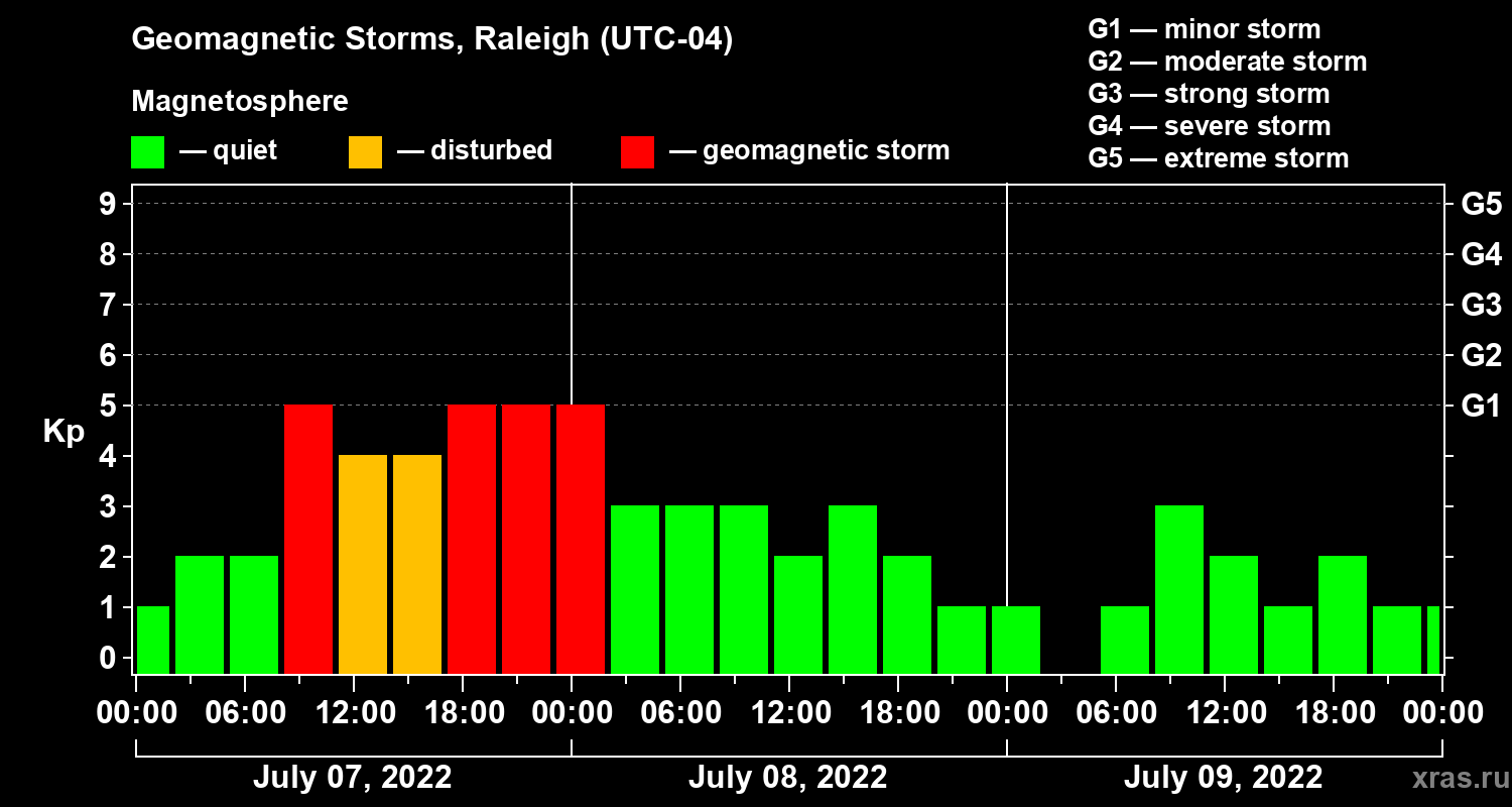 Geomagnetic storms in Raleigh — Jul 09, 2022