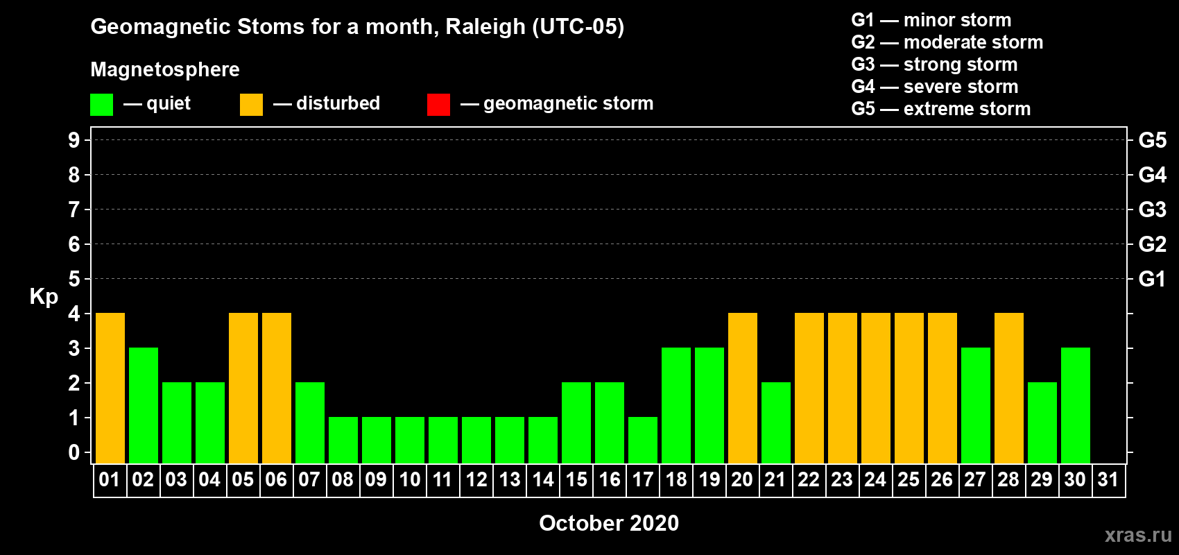 There were no days with an increased level of geomagnetic disturbance in October 2020