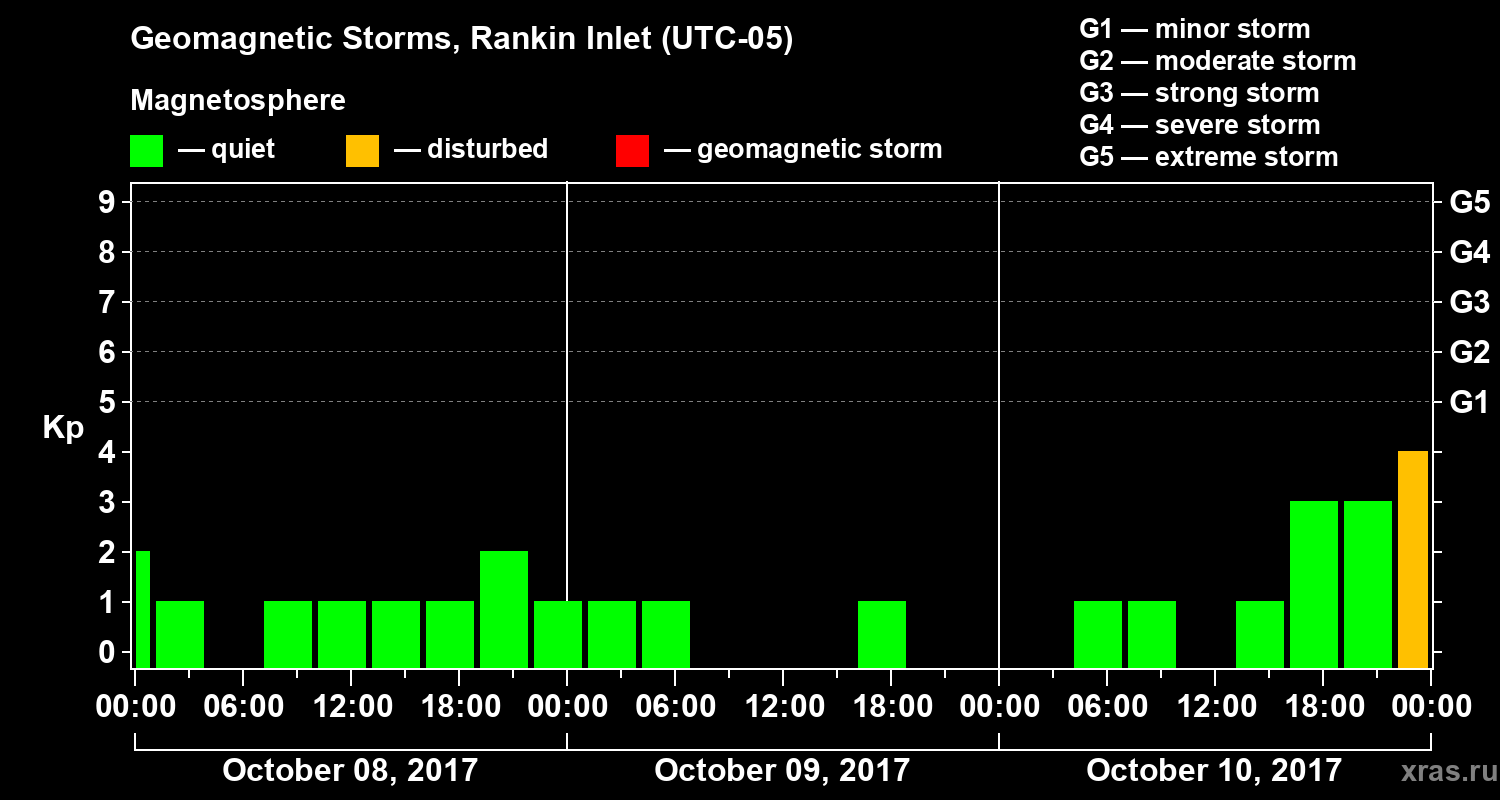 Geomagnetic storms in Rankin Inlet — Oct 10, 2017