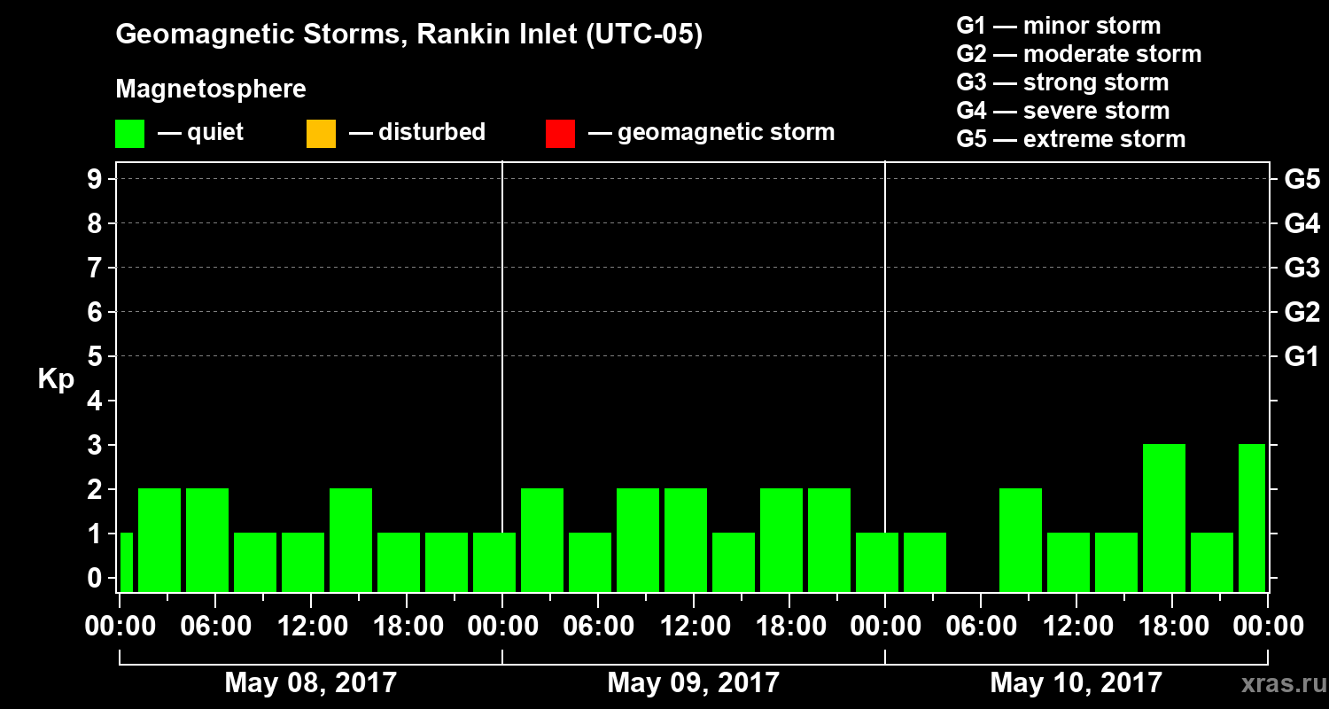 Geomagnetic storms in Rankin Inlet on May 10, 2017
