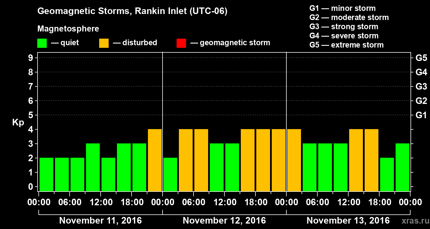 Geomagnetic storms in Rankin Inlet — Nov 13, 2016