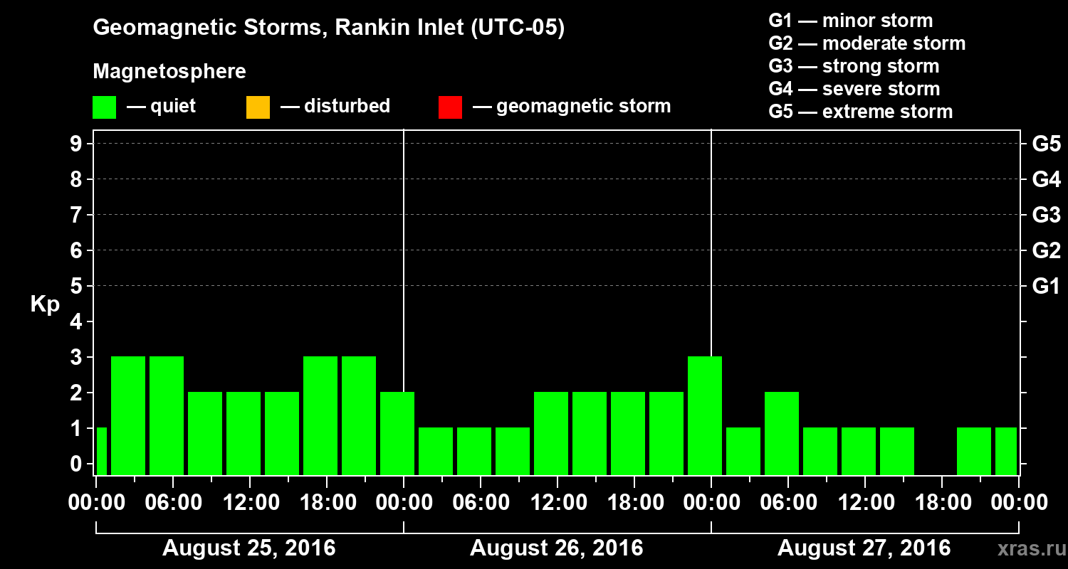 Geomagnetic storms in Rankin Inlet — Aug 27, 2016
