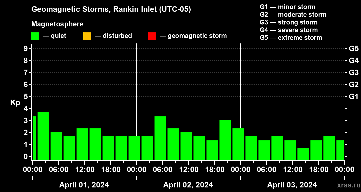 Geomagnetic storms in Rankin Inlet — Apr 03, 2024