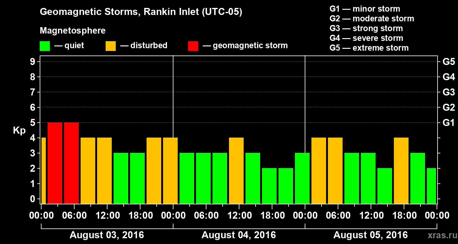 Geomagnetic storms in Rankin Inlet — Aug 05, 2016