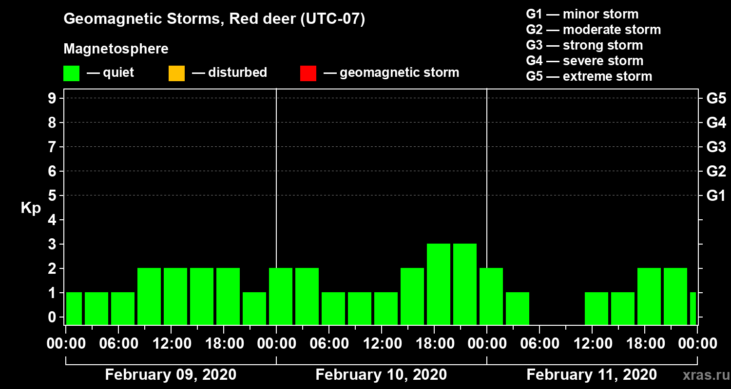 Geomagnetic storms in Red deer — Feb 11, 2020