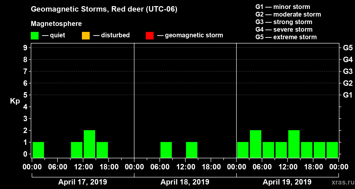 Geomagnetic storms in Red deer — Apr 19, 2019