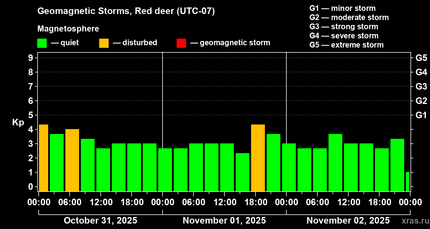Geomagnetic storms in Red deer — Nov 02, 2025