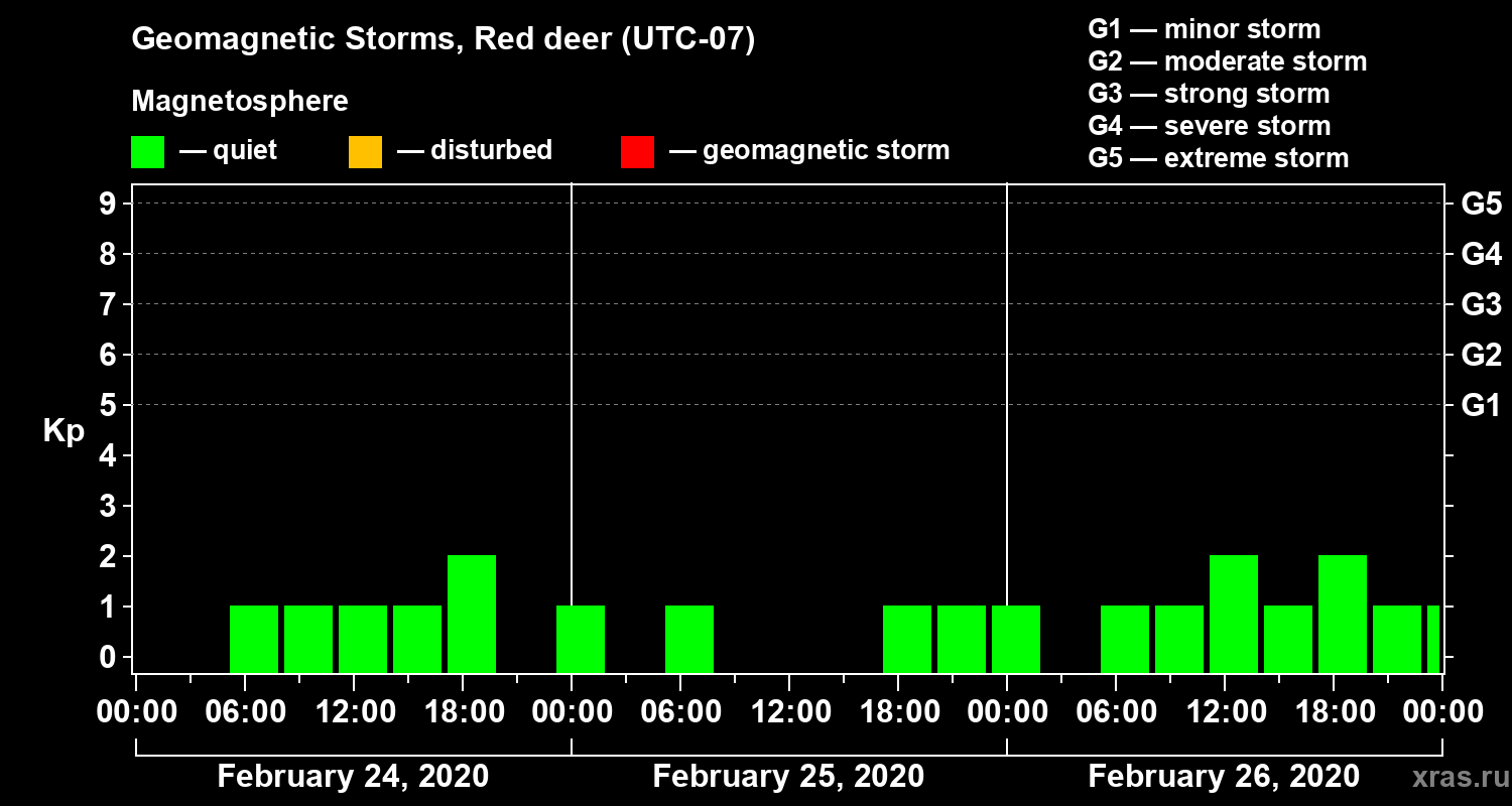 Geomagnetic storms in Red deer — Feb 26, 2020