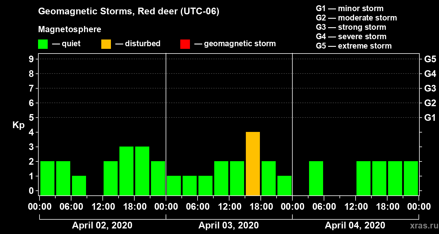 Geomagnetic storms in Red deer — Apr 04, 2020