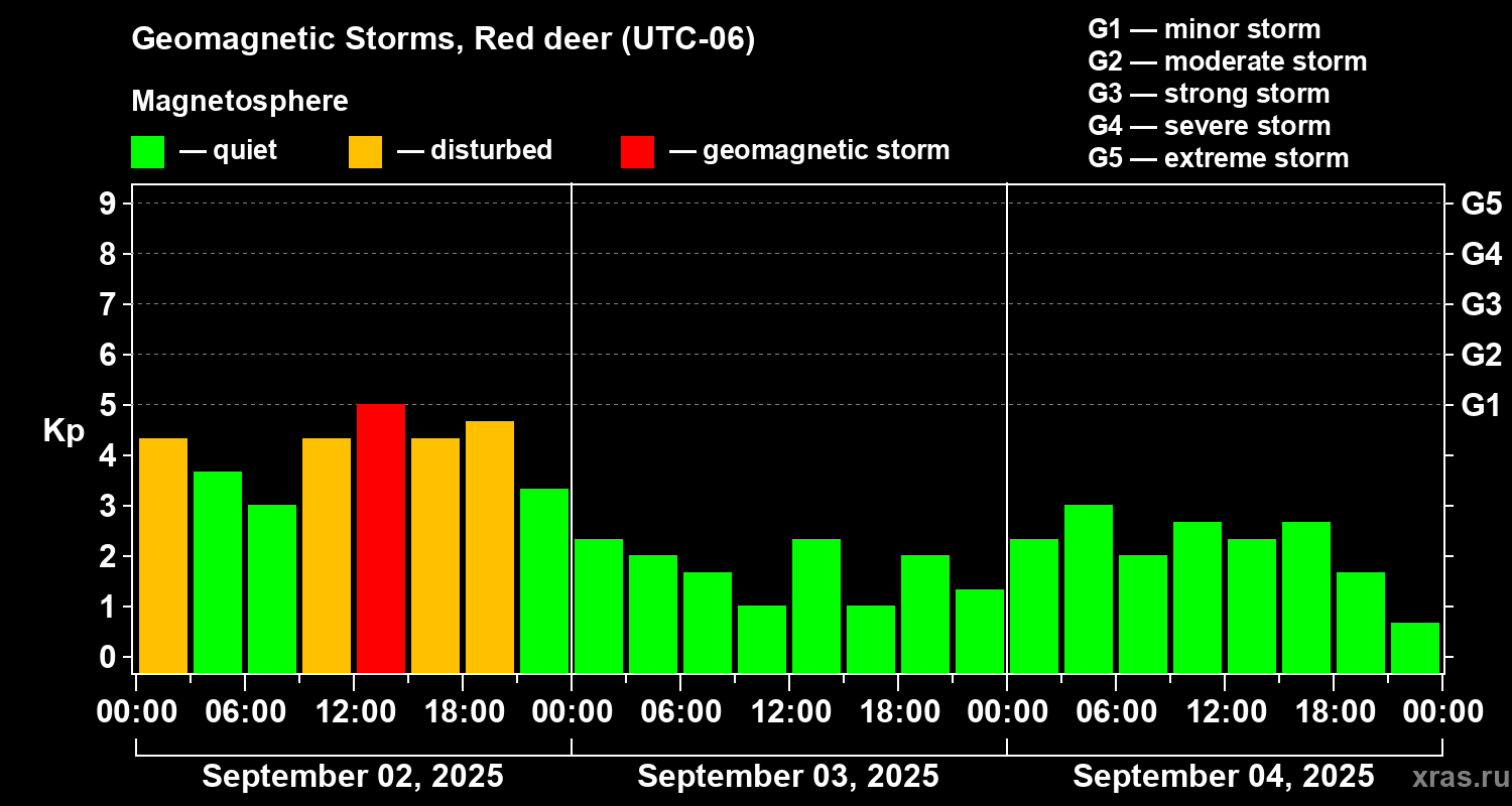 Geomagnetic storms in Red deer — Sep 04, 2025
