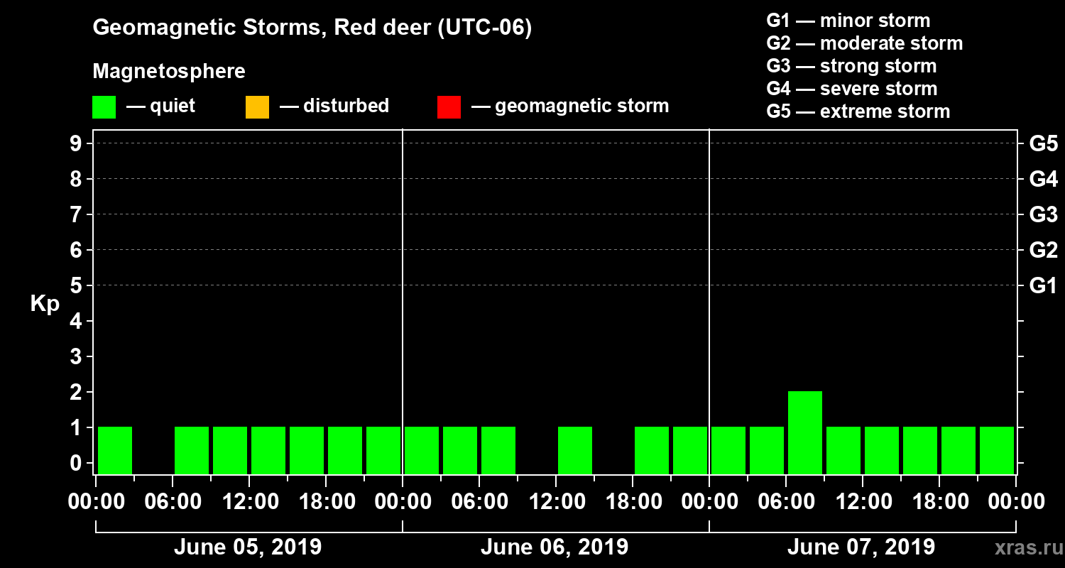 Geomagnetic storms in Red deer on Jun 07, 2019
