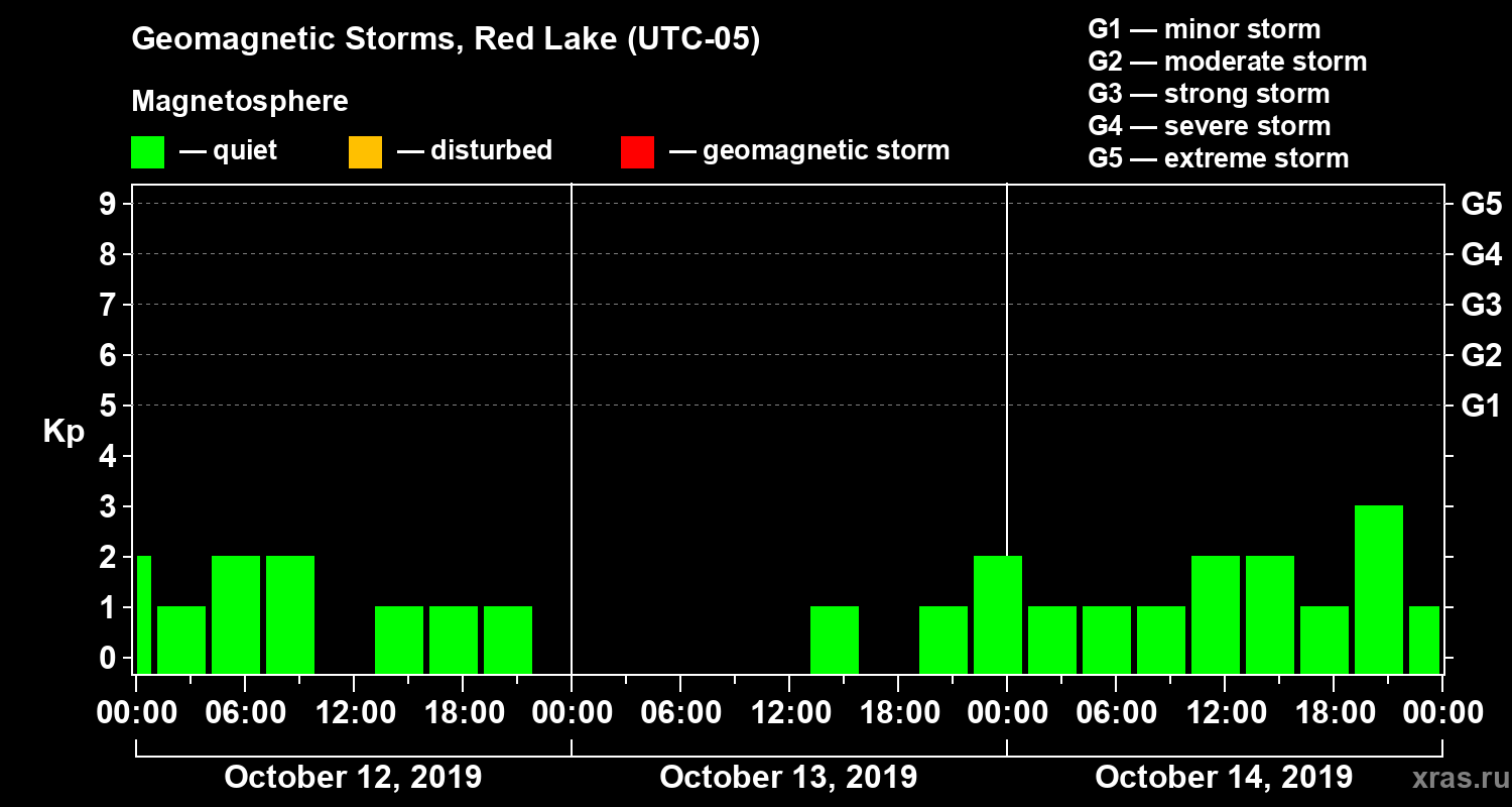 Geomagnetic storms in Red Lake on Oct 14, 2019