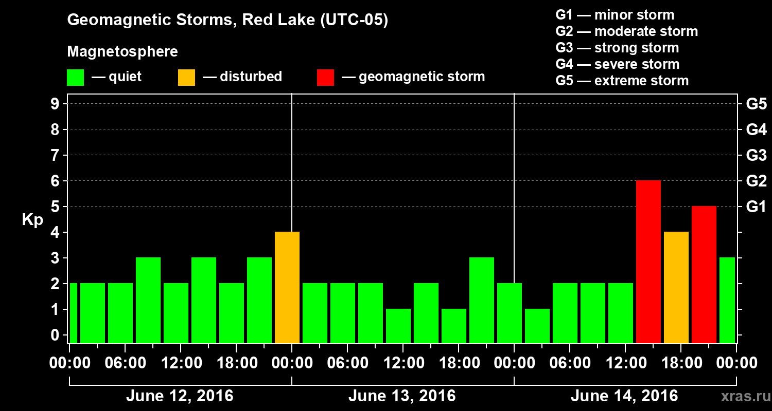 Geomagnetic storms in Red Lake — Jun 14, 2016