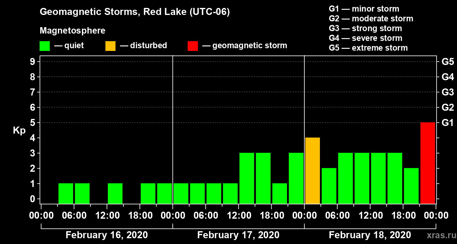 Geomagnetic storms in Red Lake — Feb 18, 2020