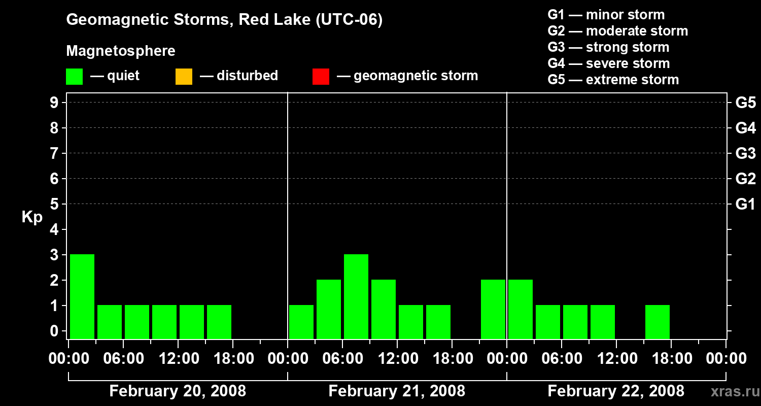 Geomagnetic storms in Red Lake — Feb 22, 2008