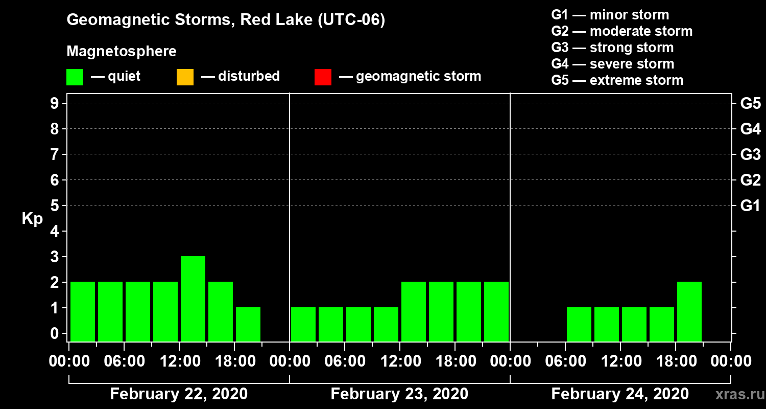 Geomagnetic storms in Red Lake on Feb 24, 2020