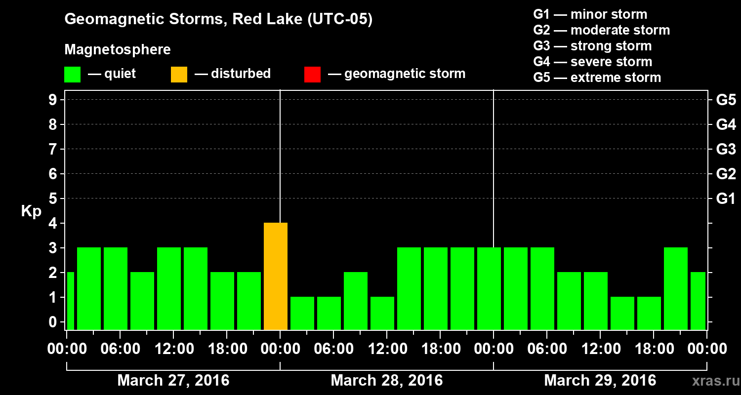 Geomagnetic storms in Red Lake — Mar 29, 2016