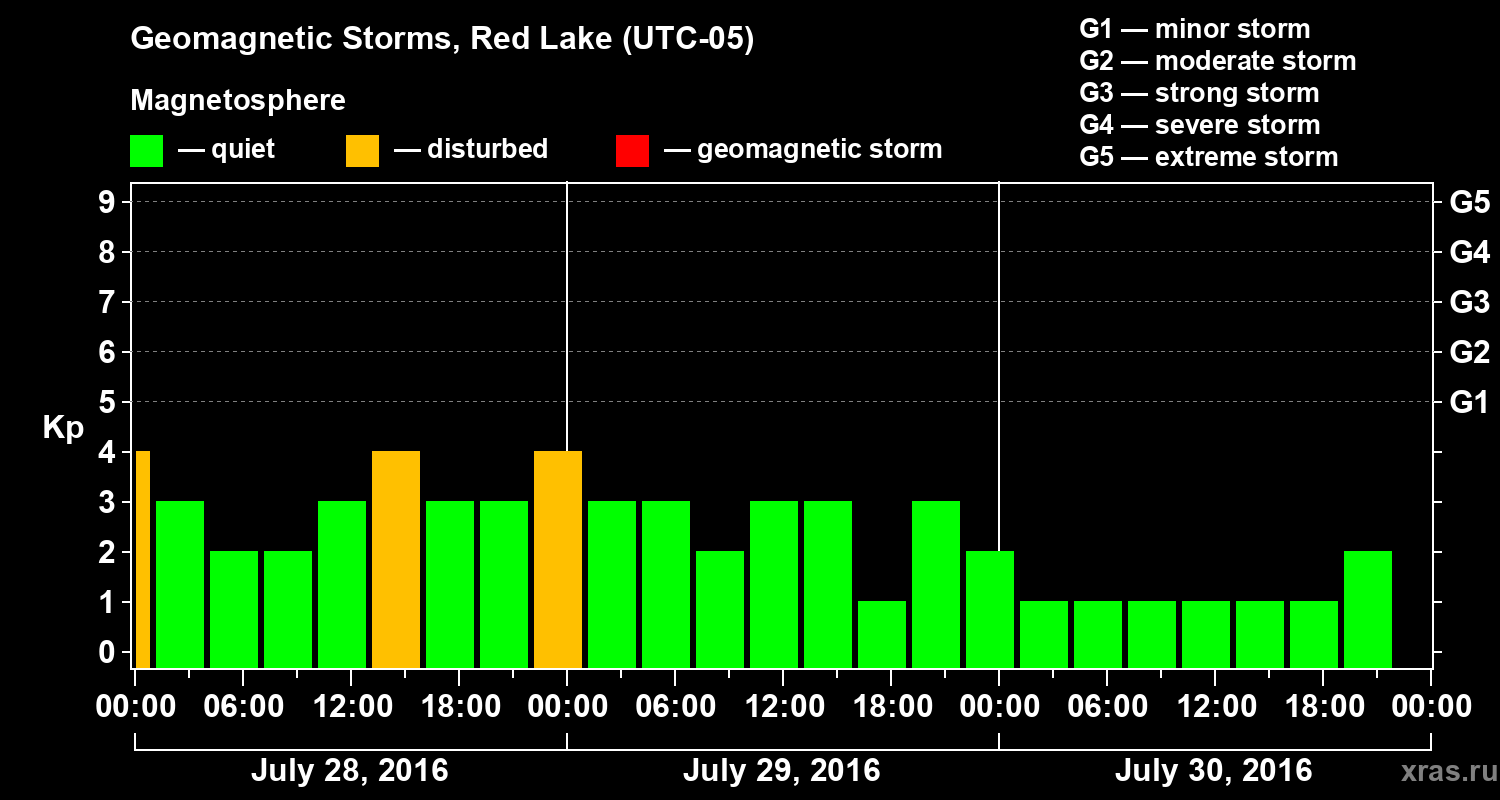 Geomagnetic storms in Red Lake — Jul 30, 2016