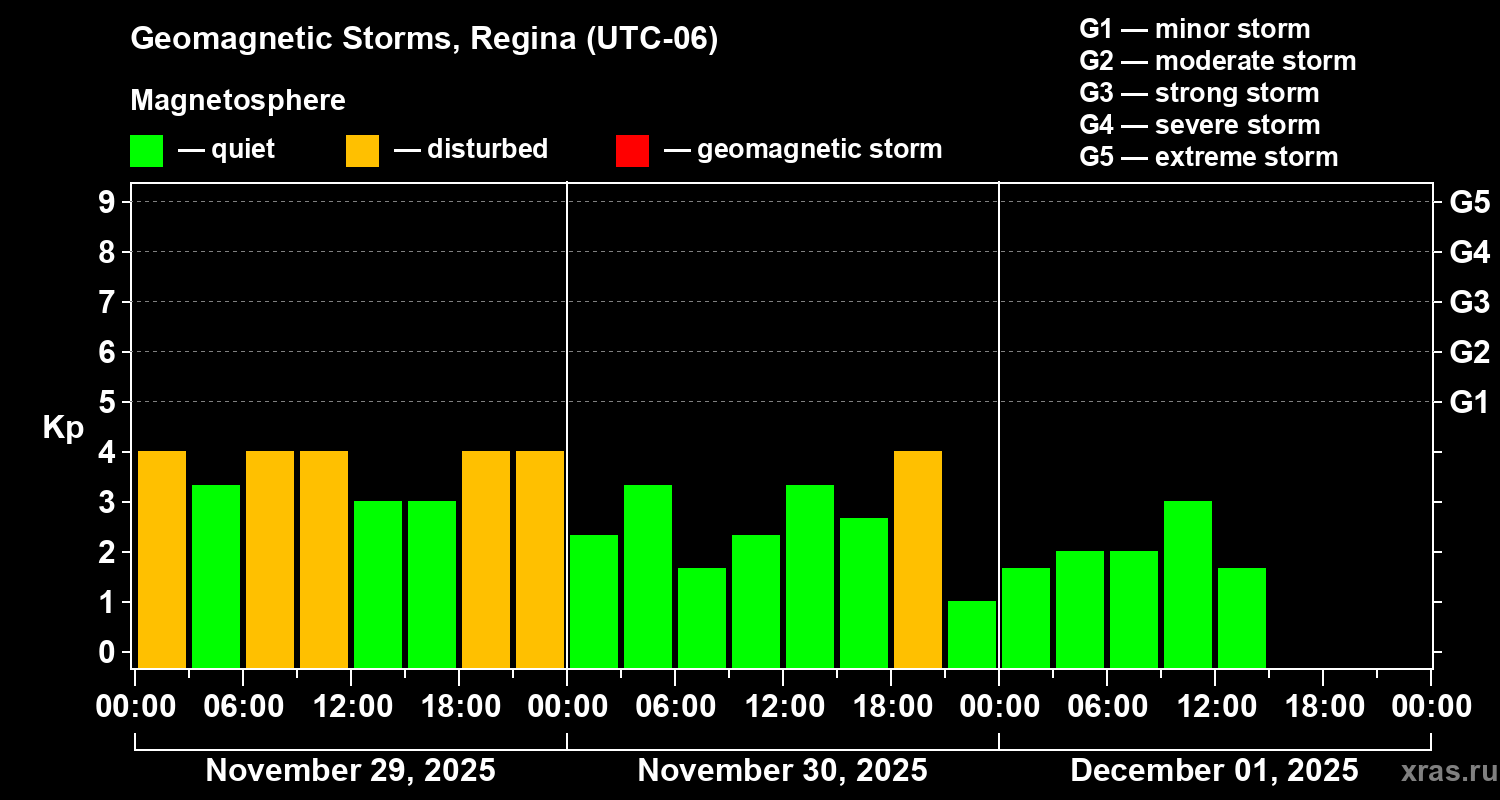 Changes in the geomagnetic index Kp from November 29 to December 1, 2025 for mid latitudes