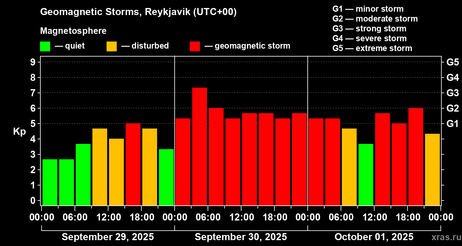 Geomagnetic storms in Reykjavik — Oct 01, 2025