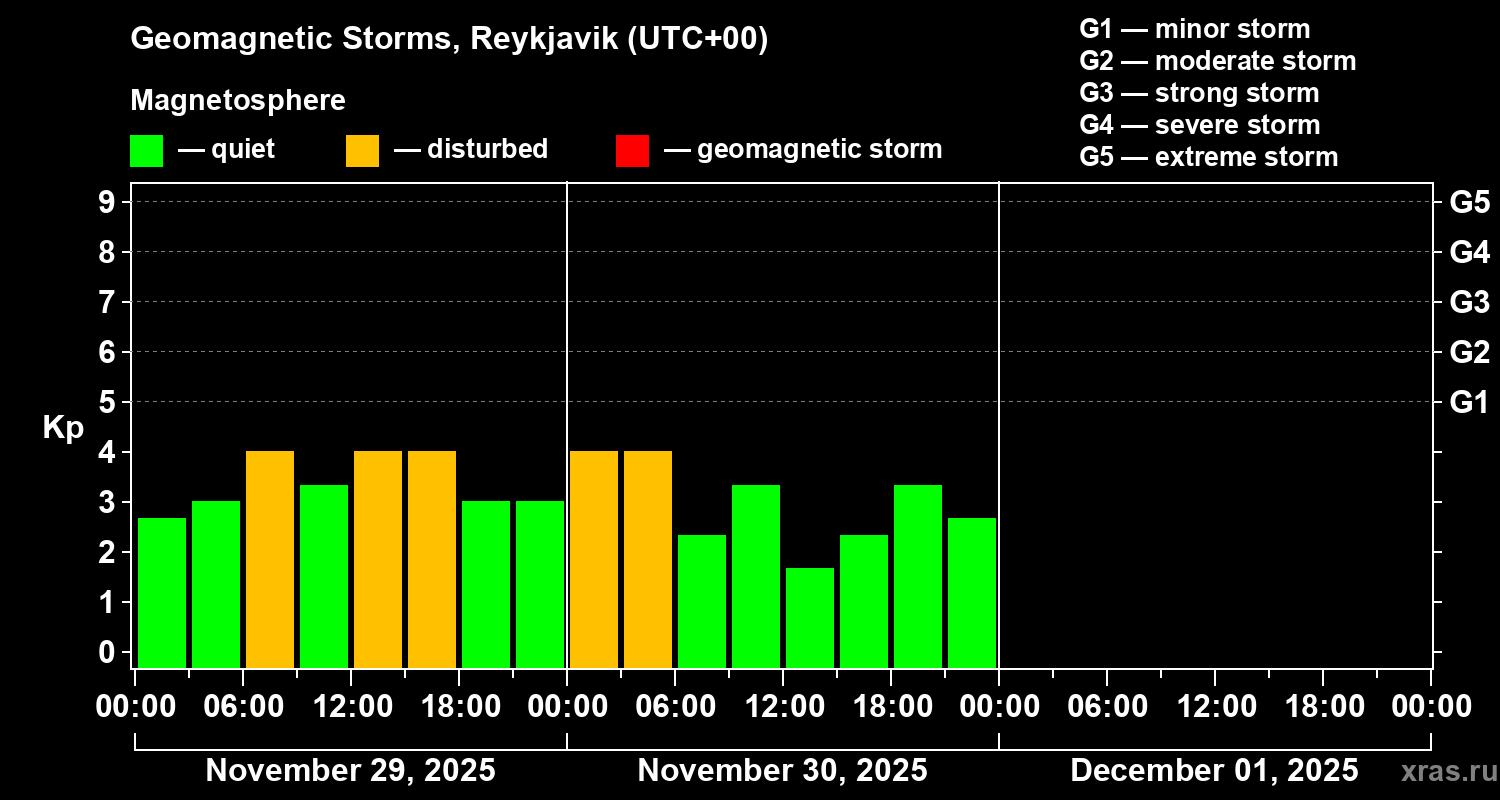 Geomagnetic storms in Reykjavik on Dec 01, 2025
