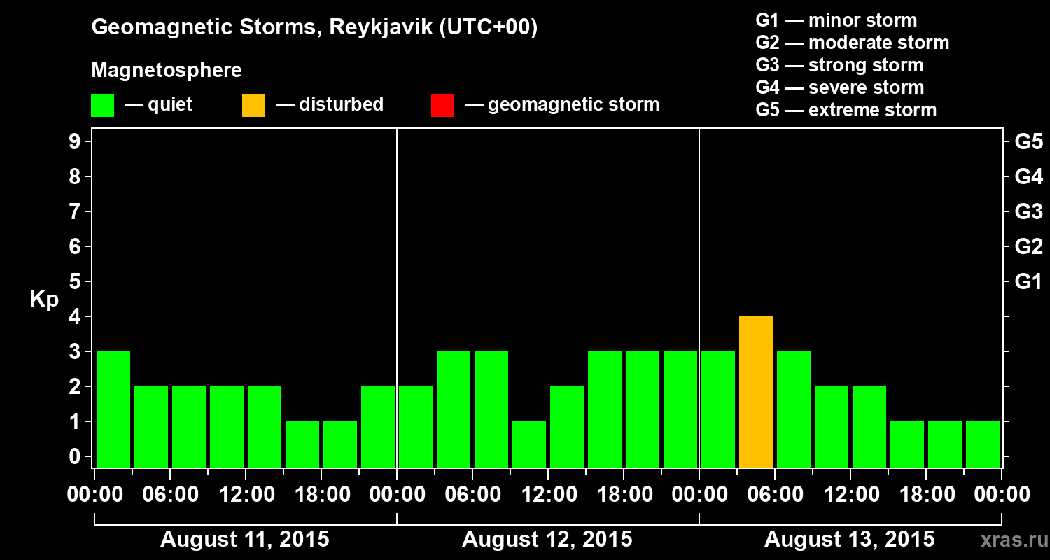 Geomagnetic storms in Reykjavik — Aug 13, 2015