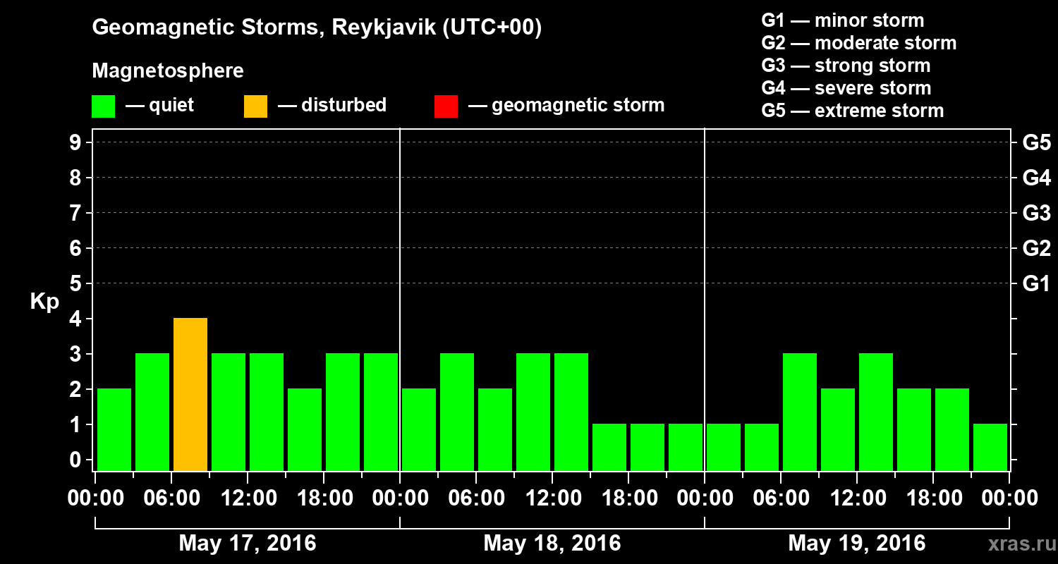 Geomagnetic storms in Reykjavik on May 19, 2016