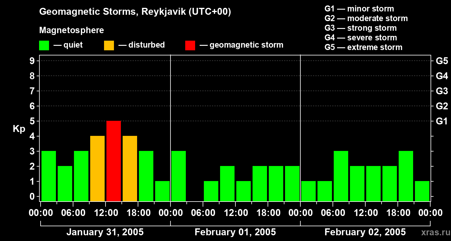 Geomagnetic storms in Reykjavik on Feb 02, 2005