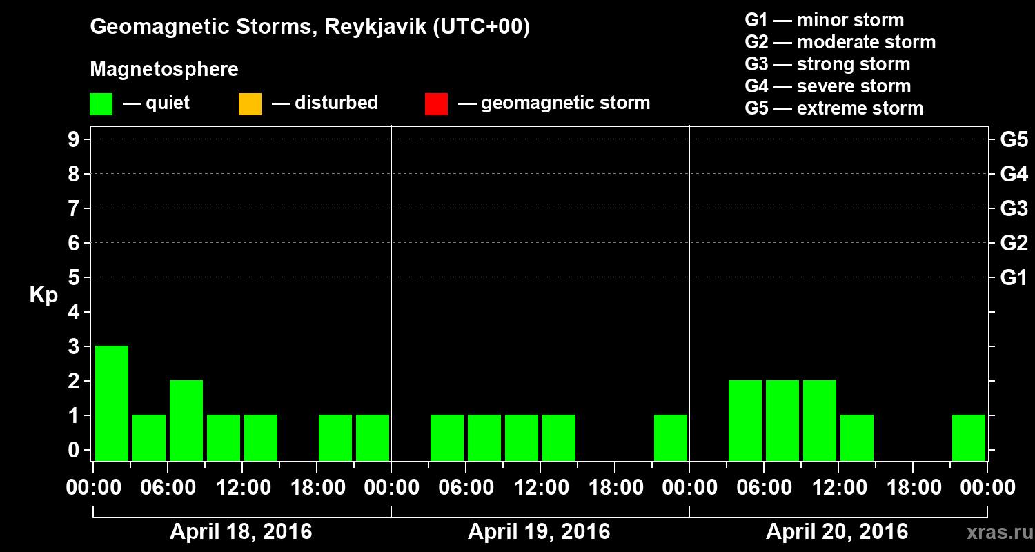 Geomagnetic storms in Reykjavik on Apr 20, 2016